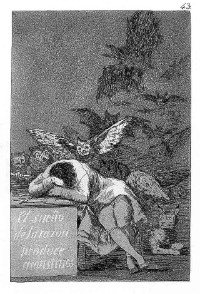 El sueño de la razón produce monstruos Francisco de Goya, um 1797-1799 Aquatinta-Radierung 21,6 × 15,2 cm Die Platte befindet sich im Museo de Calcografía Nacional, Madrid |